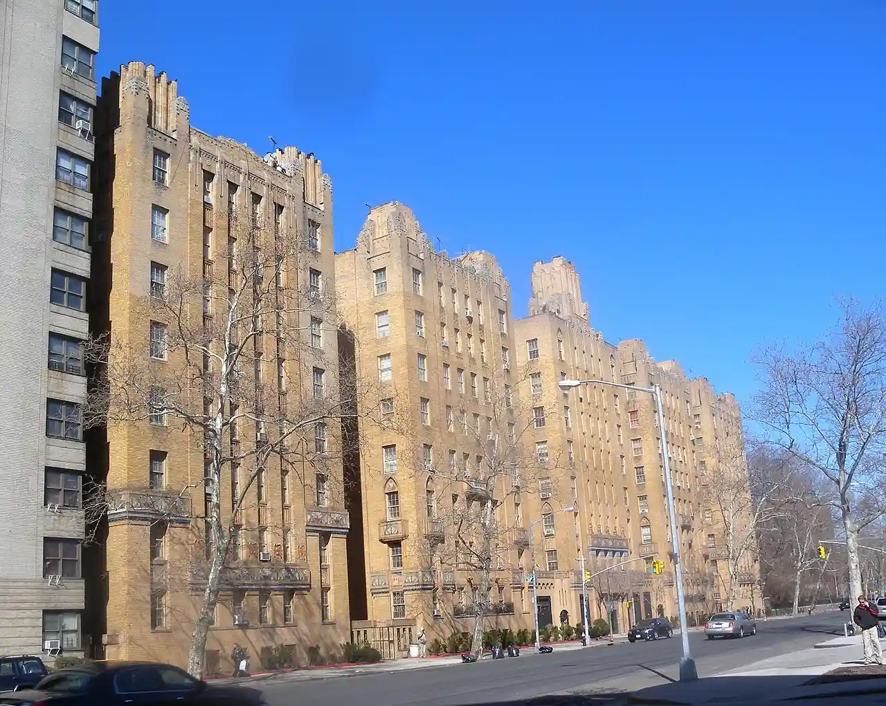 The Park Plaza Apartments were one of the first and most prominent Art Deco apartment buildings erected in the Bronx in New York City. The eight-story, polychromatic terra cotta embellished structure at 1005 Jerome Avenue and West 164th Street was designed by Horace Ginsberg and Marvin Fine and completed in 1931. It is an eight-story building divided into five blocks or section, each six bays wide. There are about 200 apartments, ranging from one to five rooms. See also: Read more on Wikipedia