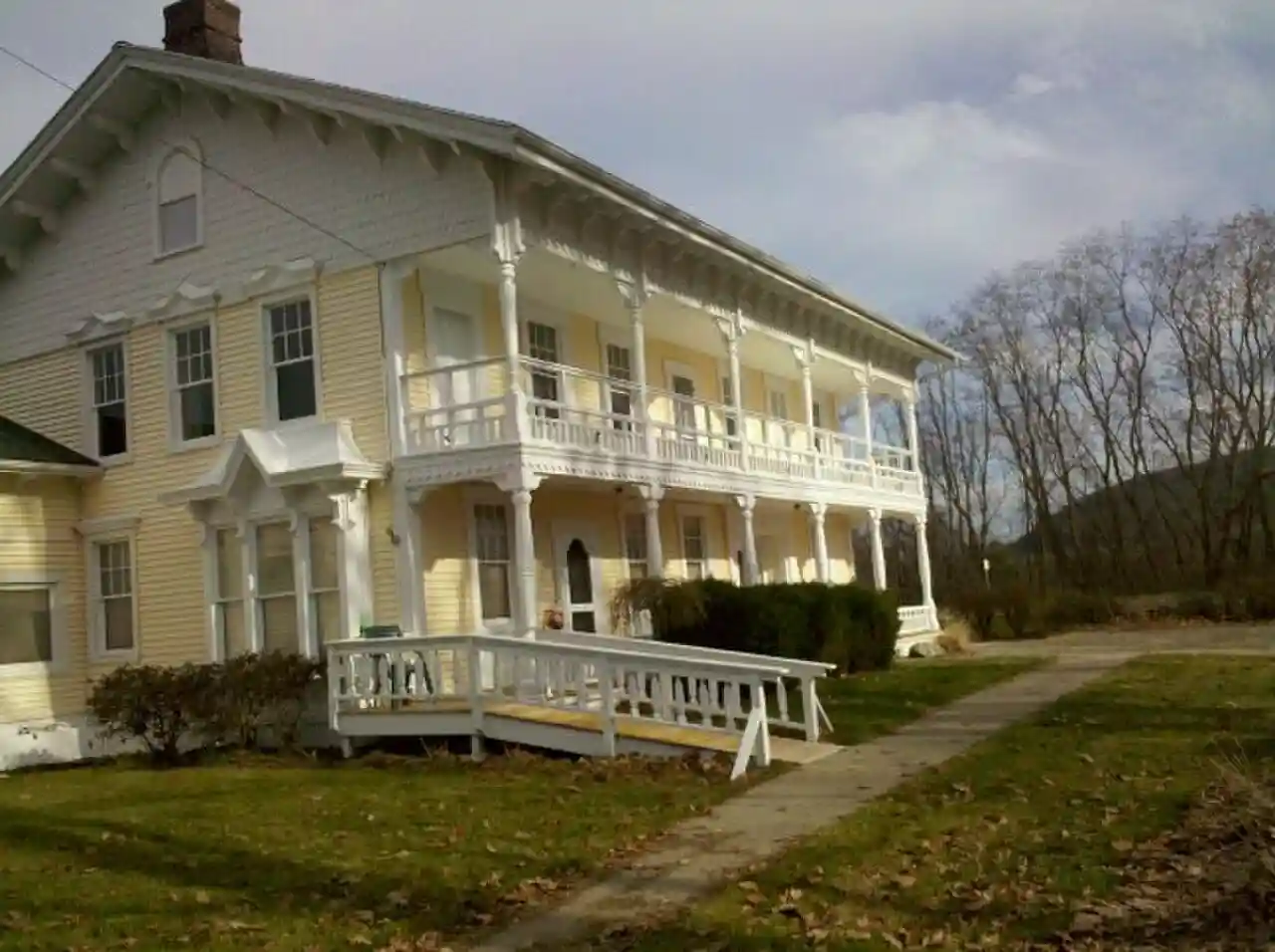 Drovers Inn and Round Family Residence consists of an historic home and an historic inn located at Vestal in Broome County, New York. The Drovers Inn was built about 1844 and the Rounds Family Residence was built 1895–1912. The inn is a -story wood-frame Greek Revival structure with an overlay of elaborate Victorian-era decoration added about 1880. The residence was built in 1895 and features an engaged tower with a bell cast roof added in 1912. See also: Read more on Wikipedia