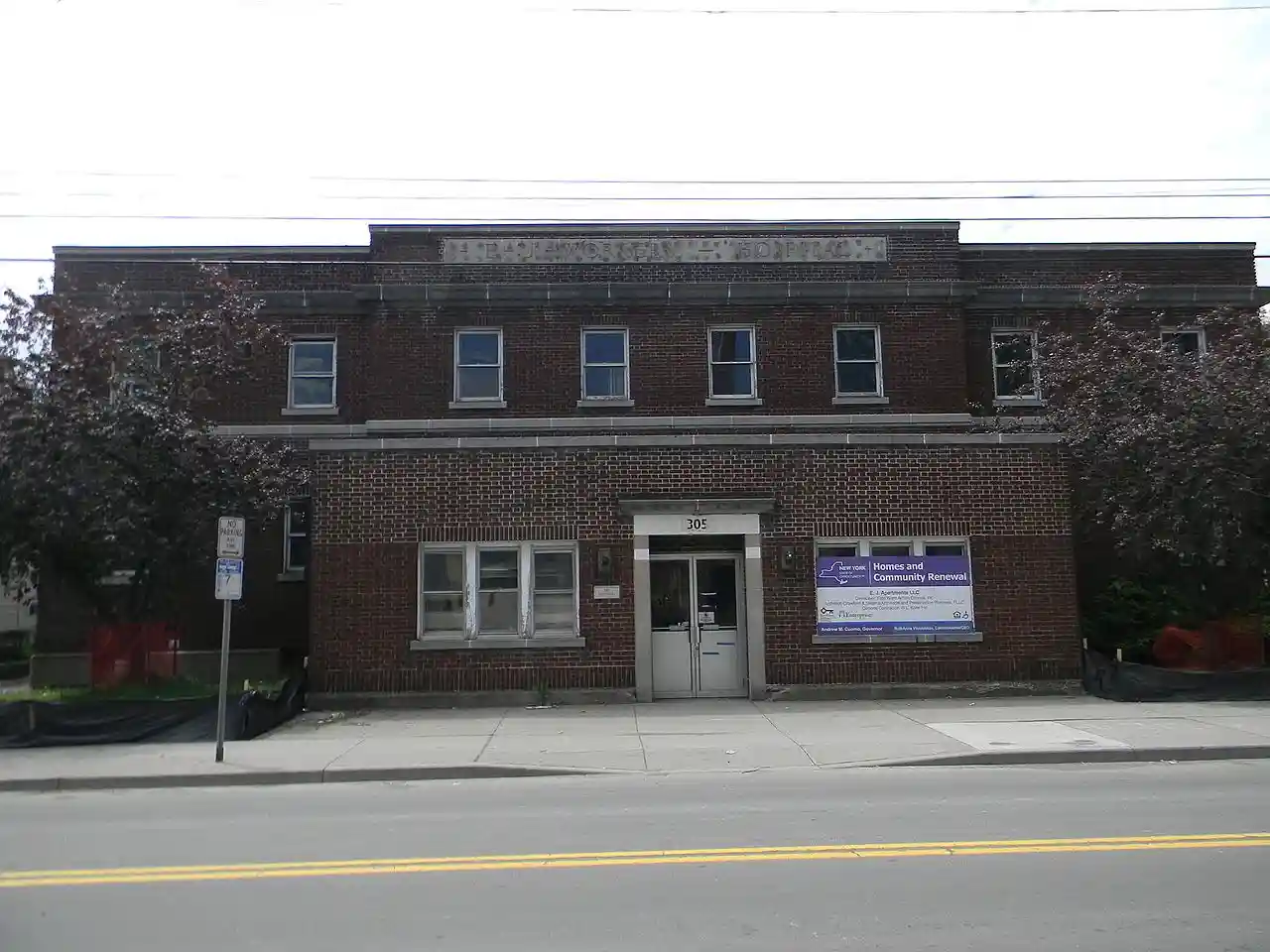 Endicott-Johnson Medical Clinic, also known as the Wilson Hospital Annex, is a historic hospital building located at Binghamton, Broome County, New York. It was built in 1928 by the Endicott Johnson Corporation as a part of its "Square Deal" program. It is a two-story, T-shaped steel frame building with a flat roof, clad in red brick. It has a projecting central section that is four bays wide and a one-story enclosed portico. It was sold in 1946 to the Wilson Memorial Hospital and used as an annex. In 1967, it was purchased by New York State for use as a day care center for the Binghamton Psychiatric Center. Note: This includes and Accompanying photographs Read more on Wikipedia