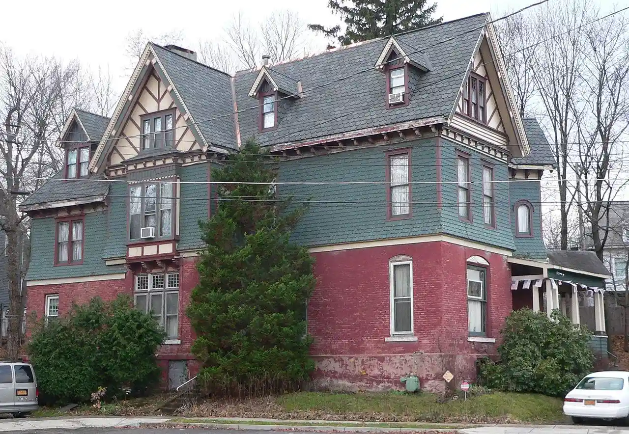Gen. Edward F. Jones House is a historic home located at Binghamton in Broome County, New York. It was constructed in 1872 and is a large -story, irregularly shaped building built of an eclectic combination of materials and textures. It was part of a large estate assembled by General Edward F. Jones (1828–1913) by 1883. The foundation and first floor are constructed of brick while the upper stories are of wood with shingle, beaded board, and clapboard siding. It is an exceptional example of the Queen Anne style. See also: Read more on Wikipedia