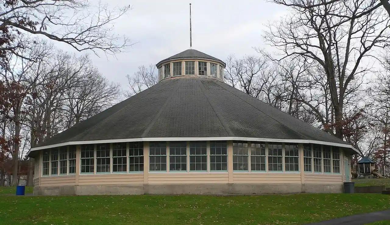 The George F. Johnson Recreation Park Carousel is a historic carousel located at Binghamton in Broome County, New York. The carousel and its pavilion were built in 1925. The carousel is housed in a wooden, one story, 16-sided, pavilion topped by a cupola. The carousel has 60 horses standing four abreast, each of which is a "jumper," and two chariots. It was constructed by the Allan Herschell Company and contains its original Wurlitzer Military Band Organ. The carousel was listed on the National Register of Historic Places in 1992. Read more on Wikipedia