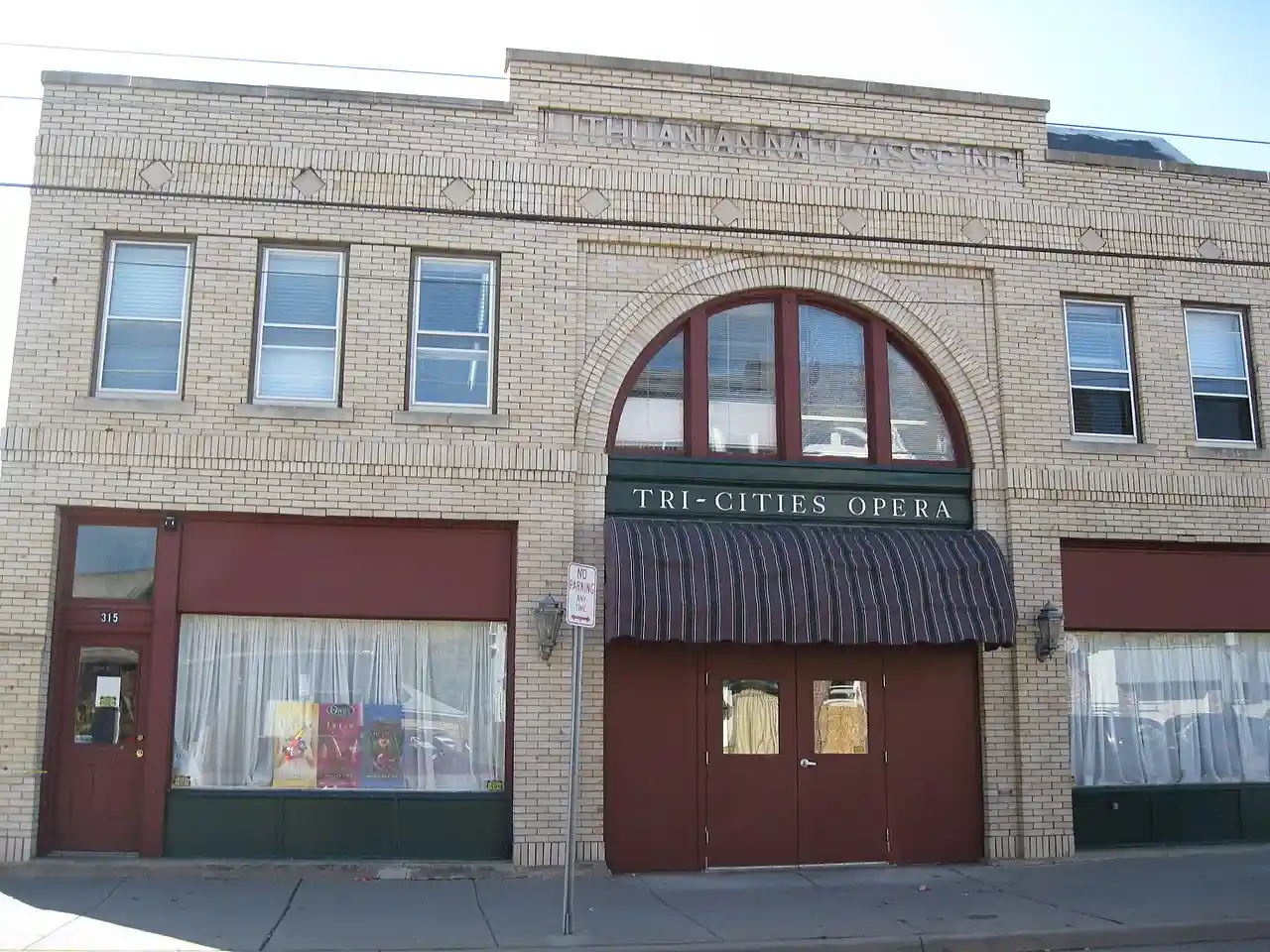 Lithuanian National Association Hall, also known as the Tri-Cities Opera, is a historic clubhouse located at Binghamton, Broome County, New York. It was built in 1917, is a two-story, steel and timber frame building with a flat roof, clad in yellow brick. It features a broad central Romanesque arch on the second floor. The building measures approximately 50 feet wide by approximately 115 feet deep. The building housed the Lithuanian National Association until 1964, when it was sold to the Tri-Cities Opera. Note: This includes and Accompanying photographs Read more on Wikipedia