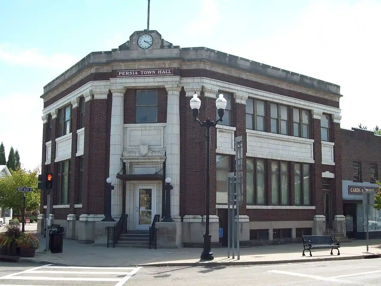 Bank of Gowanda is a historic bank building located at Gowanda in Cattaraugus County, New York. It was built in 1914, to the designs of Edvard Moeller. It is a two-story, five-sided Neoclassical style building constructed of load bearing concrete masonry and clad in red brick. The interior features a mural by noted artist Louis Grell. Since 1966, the structure has served as town hall for the town of Persia, New York. See also: Read more on Wikipedia