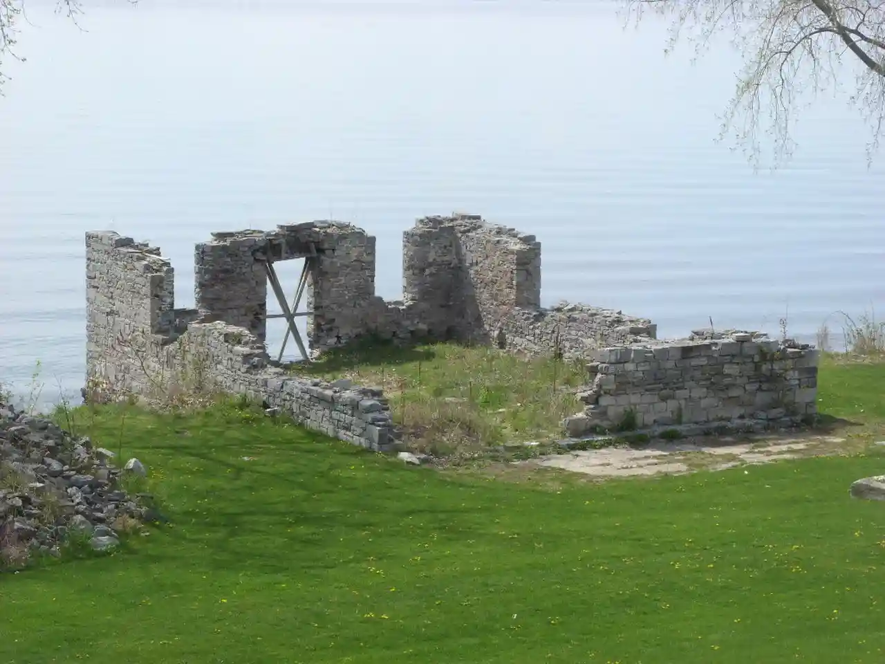 Aurora Steam Grist Mill was a historic grist mill located in Aurora, Cayuga County, New York. It was a monolithic, -story rectangular stone structure built on the shore of Lake Cayuga. It was one of the first mills built west of the Hudson River to be powered by steam. In 1974, the building's roof collapsed due to neglect and plans were to restore it for use as a community center.See also: It was largely intact until 1992, when Wells College began to demolish it in order to build a dock behind the Aurora Inn. Read more on Wikipedia