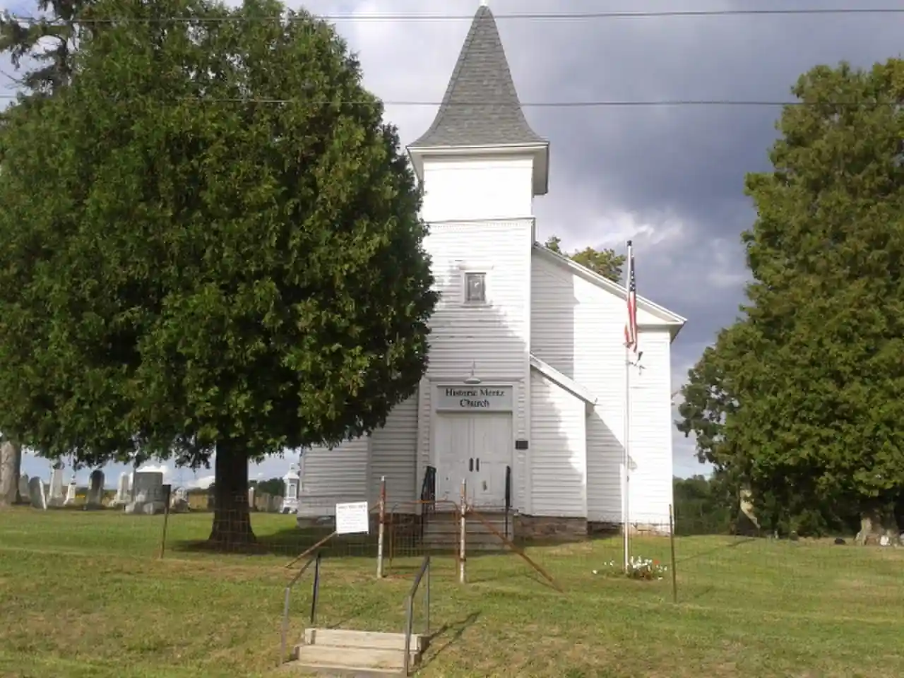 Mentz Church is a historic community church located at Montezuma in Cayuga County, New York. It is a rectangular, gable roofed frame structure built between 1820 and 1830 and enlarged during the 1870s-1880s. The front facade features a centrally engaged square tower. Also on the property is the church cemetery with headstones dating from 1813 to the 1940s. The church ceased being used for services in 1954 and is being restored for community use.See also: Read more on Wikipedia