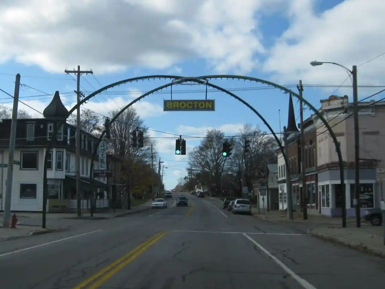 Brocton Arch is a historic "welcome arch" located at Brocton in Chautauqua County, New York. It is a freestanding steel arch bearing the community's name constructed in 1913 over a public thoroughfare. It is a rare double span, four way street arch.See also: Read more on Wikipedia