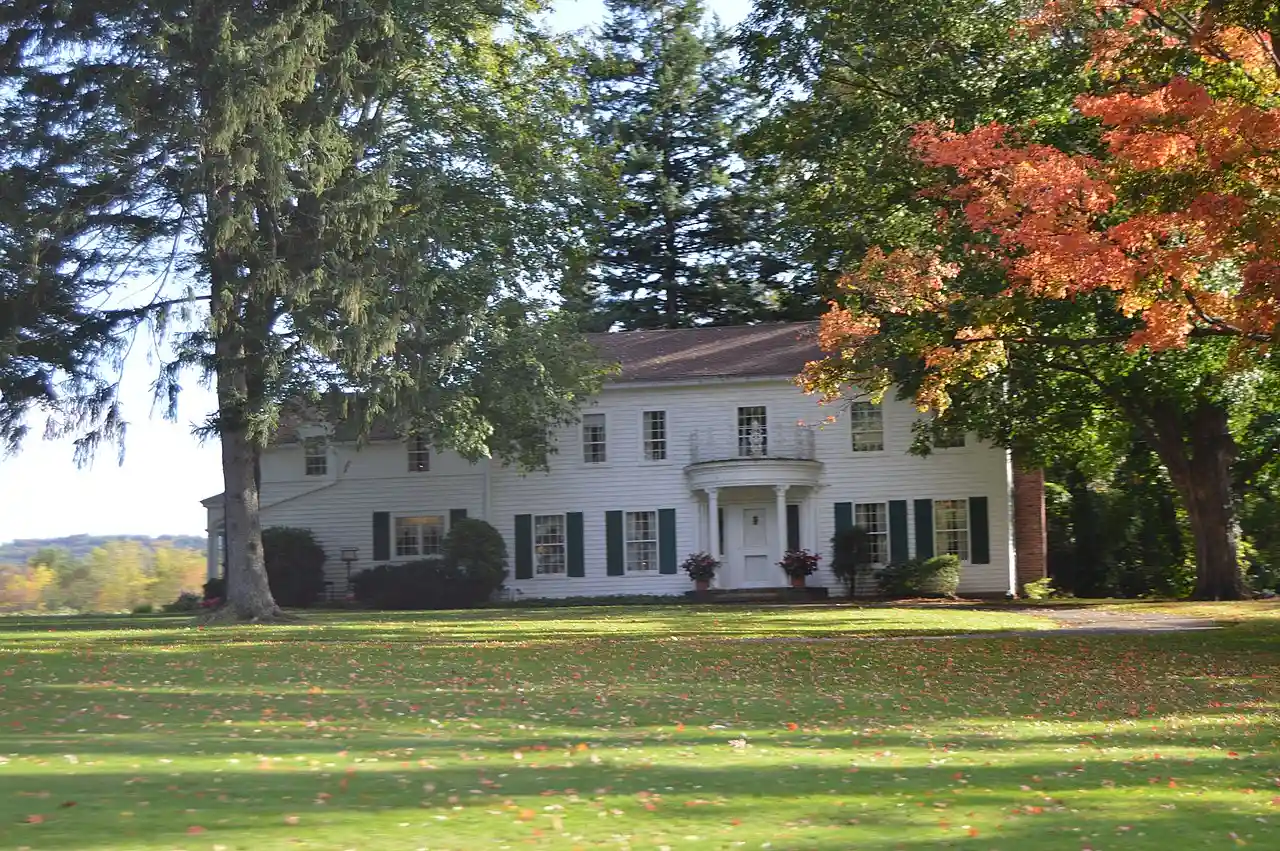 McMahan Homestead, also known as Landmark Acres, is a historic home located in Westfield in Chautauqua County, New York. It is a two-story, five bay wood frame dwelling built in about 1820. The home features a semicircular portico with a denticulated cornice and corinthian columns that was added in the 20th century. On this property is a barn dating from the early 1800s. The home was constructed by Chautauqua County's first settler, Col. James McMahan, who came to Westfield in 1802 from Northumberland County, Pennsylvania. The property is the oldest settled property in Chautauqua county with an original deed from the Holland Land Company for a large portion of Chautauqua County and has the oldest landmark in the county. Chautauqua County celebrated its 100th anniversary, 1902, on the front lawn of the McMahan homestead. In 2002 Chautauqua county celebrated its 200th anniversary also on the property. Read more on Wikipedia