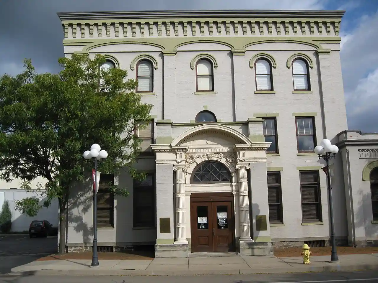 The Chemung Canal Bank Building is located at 415 East Water Street in Elmira, Chemung County, New York, United States. It is thought to be the oldest commercial building in Elmira. The Chemung Canal opened in 1832 and construction on the bank building began the same year. In 1833 the bank moved into the new building and the Chemung Canal Trust Company was chartered to deposit cash and supply capitol and credit. The building continued to house the bank for seventy-six years. For the following fifty-six years it was home to various local law offices. From 1976 forward, it has been owned by the Chemung County Historical Society. The building is significant for its period architecture and its place in the history of the area. It was named to the National Register of Historic Places in 1978. See also: and Read more on Wikipedia
