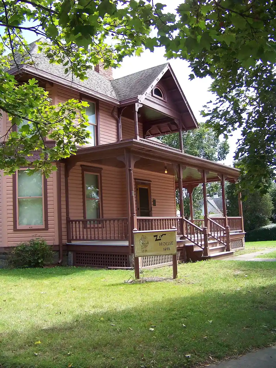 Zimmerman House, also known as Zim House, is a historical structure located in Horseheads, New York. It was the home of cartoonist Eugene Zimmerman, also known as "Zim". and Accompanying photos, exterior and interior, from 1980 The architectural and historic significance of the house led to its listing in the National Register of Historic Places in 1983. Read more on Wikipedia
