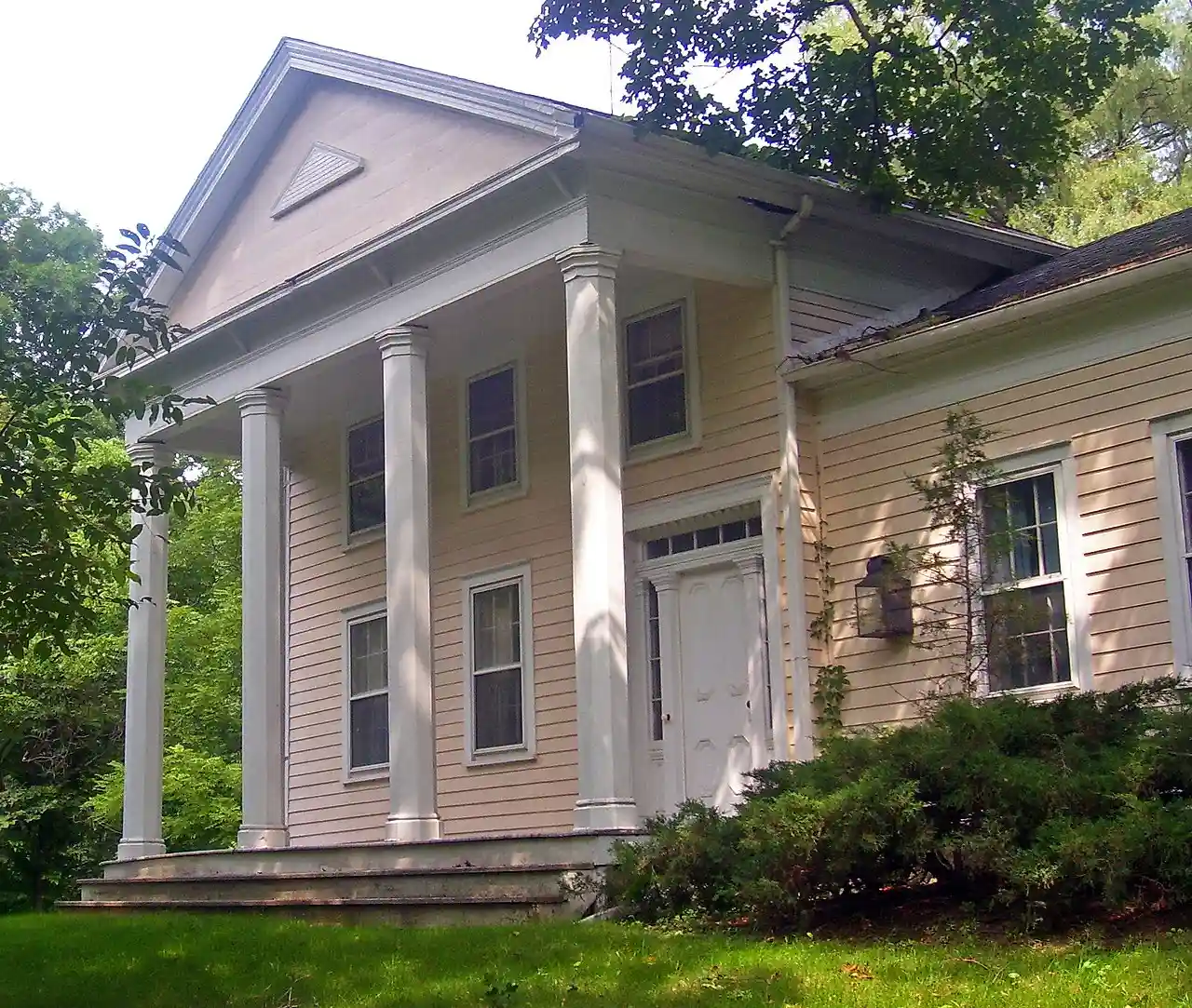 The Coons House is located along NY 9G in Clermont, New York, United States, across the road from the Clarkson Chapel. It was built in the mid-19th century in the Greek Revival architectural style. Read more on Wikipedia