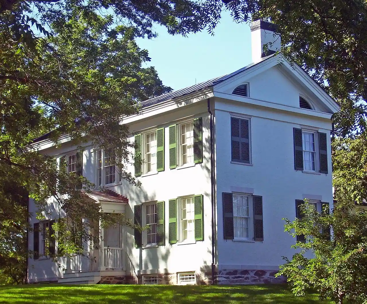 The Dr. Abram Jordan House (also known as the Wedding Present House) is located along the NY 23 state highway in Claverack-Red Mills, New York, United States. It is a brick Federal style house, with some Greek Revival decorative touches, built in the 1820s as a wedding present from a local landowner to his daughter and son-in-law. Read more on Wikipedia