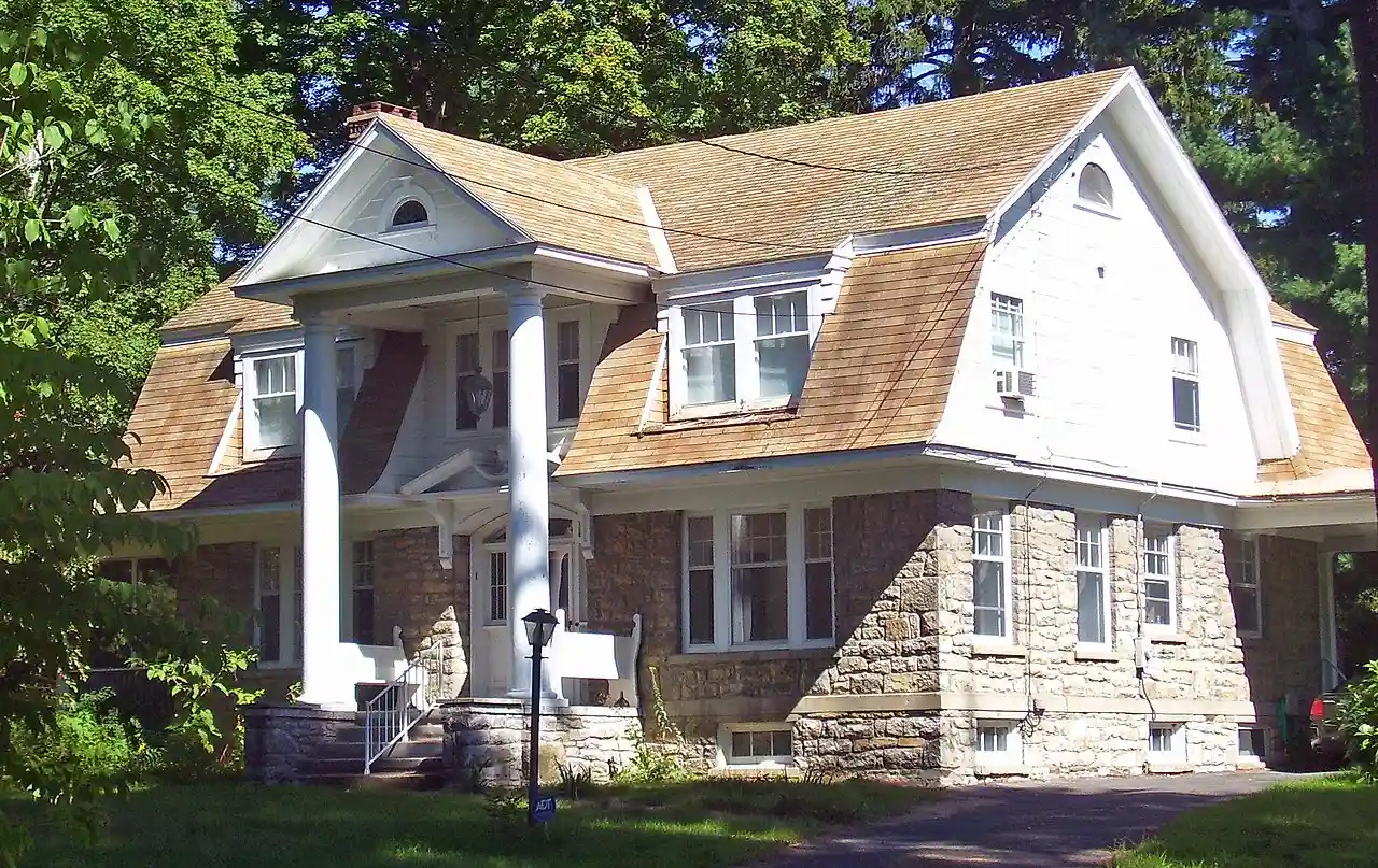 The George Felpel House is located on NY 9H in Claverack-Red Mills, New York, United States. It is a stone Colonial Revival and Dutch Colonial Revival house built in the 1920s. Read more on Wikipedia