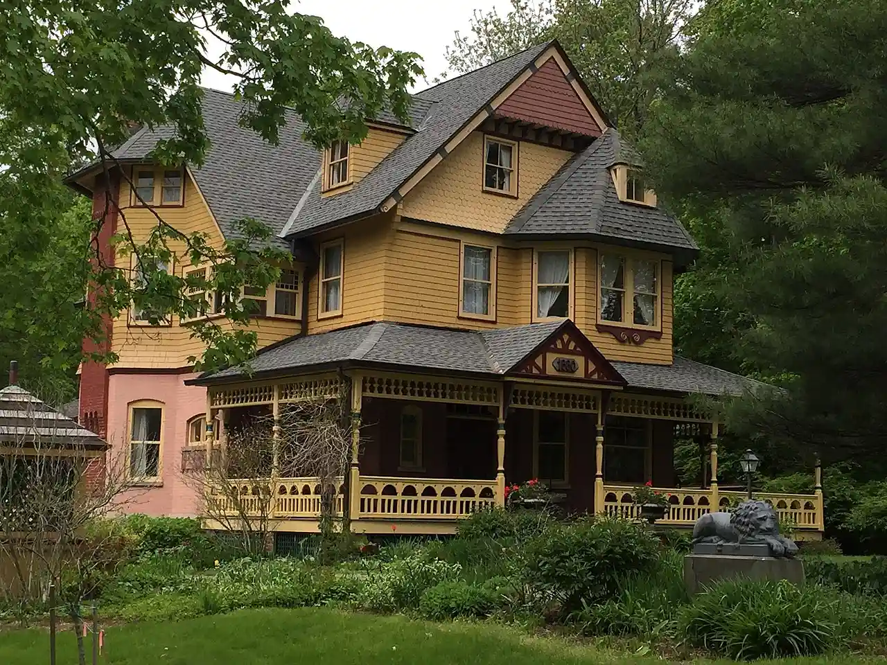 Knollcroft is a historic home located at New Concord in Columbia County, New York. It was built in 1880 as a summer retreat. It is a large, two-story brick-and-frame structure designed in the Queen Anne style. It features a two-story, projecting polygonal bay with a hipped roof and a large, deep verandah. Also on the property is a carriage house, well house, and privy. See also: Read more on Wikipedia