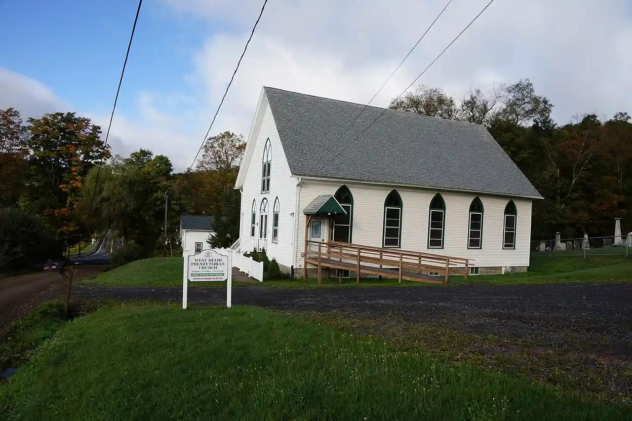 West Delhi Presbyterian Church, Manse, and Cemetery is a historic Presbyterian church complex and cemetery at 18 and 45 Sutherland Road in West Delhi, Delaware County, New York. The church is a one-story, rectangular wood-frame building constructed in 1892. It is surmounted by a steep gable roof with overhanging eaves. The manse was built about 1840 and is a large two story wood-frame building with a cross gable plan. The West Delhi Cemetery contains the graves of most settlement era families and features stones typical of their period and style. Note: This includes and Accompanying six photographs Read more on Wikipedia