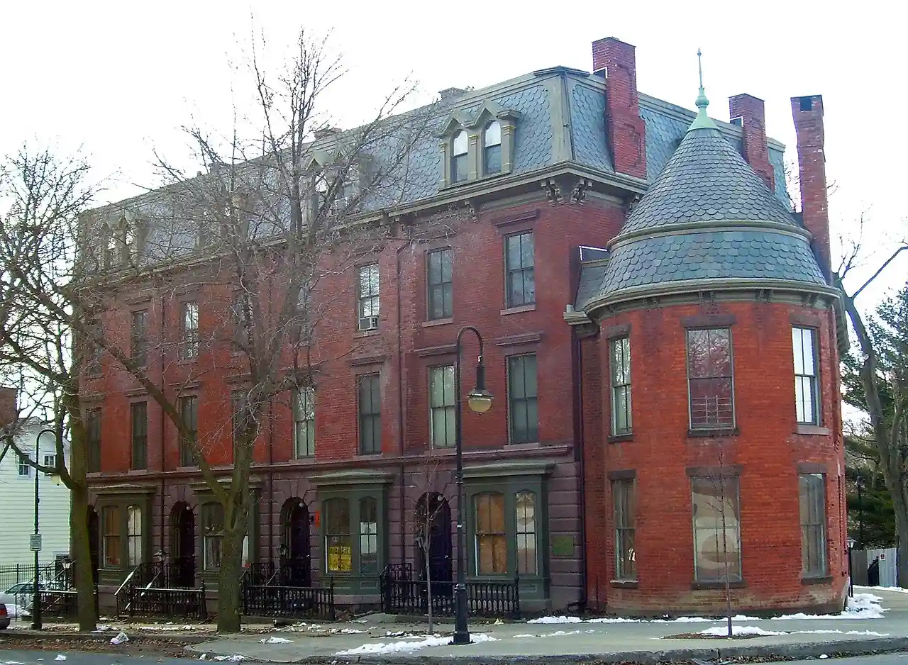 Harlow Row, also called Brick Row, is a group of brick townhouses in Poughkeepsie, New York, United States. While their address is given as 100-106 Market Street, they are actually located on a short side street referred to as Little Market Street, across from a small park with the Soldiers' and Sailors' Memorial Fountain, on the residential southern fringe of the city's downtown. Read more on Wikipedia