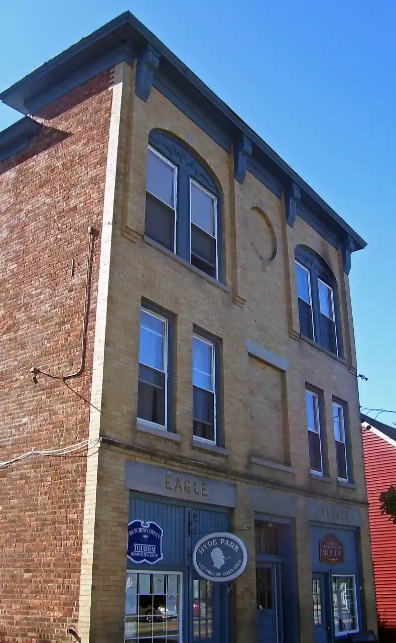 The Hyde Park Firehouse is located along U.S. Route 9 in Hyde Park, New York. It was built in 1902 as the headquarters for the Eagle Engine and Rescue fire company, which later became part of the Hyde Park Fire Department and moved to newer quarters a block further up Route 9. Architects John O'Donnell and William J. Beardsley designed the building in a Renaissance Revival architectural style. Note: This includes and Accompanying two photographs It was added to the National Register of Historic Places in 1993. Read more on Wikipedia