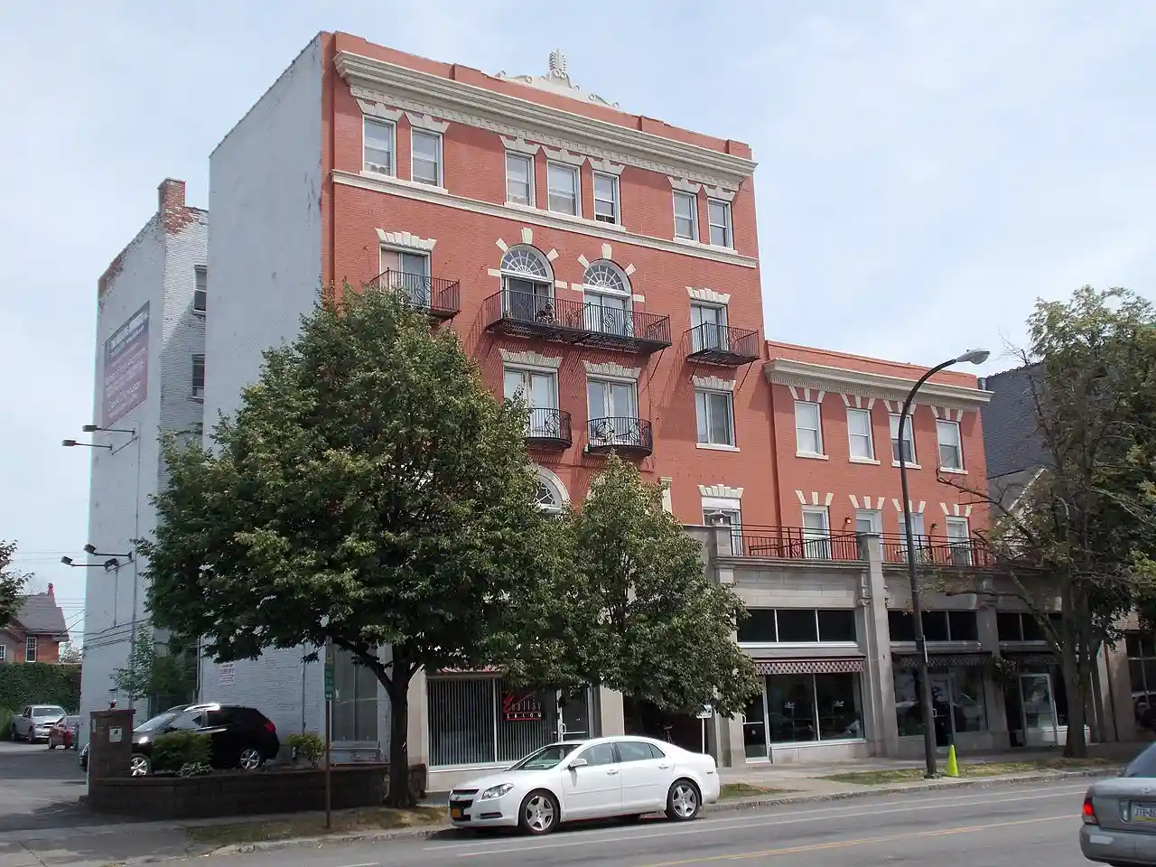 Colonial Flats and Annex, also known as The Colonial Apartments, is a historic apartment building located in the Allentown neighborhood of Buffalo, Erie County, New York, United States. The building consists of three components: the 1896 five-story, brick "Flats" to the north; the 1900 three-story brick "Annex" at the south end, and a 1926 single-story precast concrete commercial storefront that unites the Flats and Annex along Delaware Avenue. The Flats and Annex are internally connected and share a similar Colonial Revival style. Read more on Wikipedia