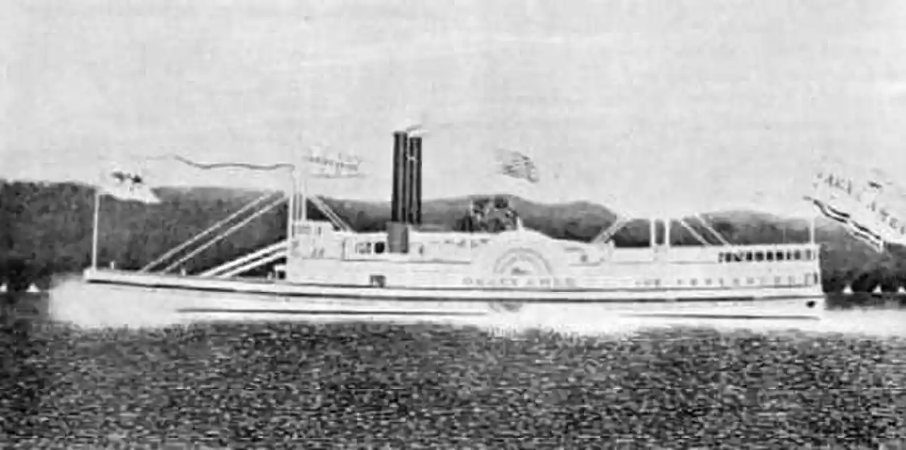 The steamboat Oakes Ames was built in 1868 by the Napoleon B Proctor Shipyard in Burlington, Vermont for the Rutland Railroad. The 244-foot paddle wheeler was designed to ferry railroad cars from Burlington across Lake Champlain to Plattsburgh, New York. She was named after one of the railroad's directors' Oakes Ames. Read more on Wikipedia