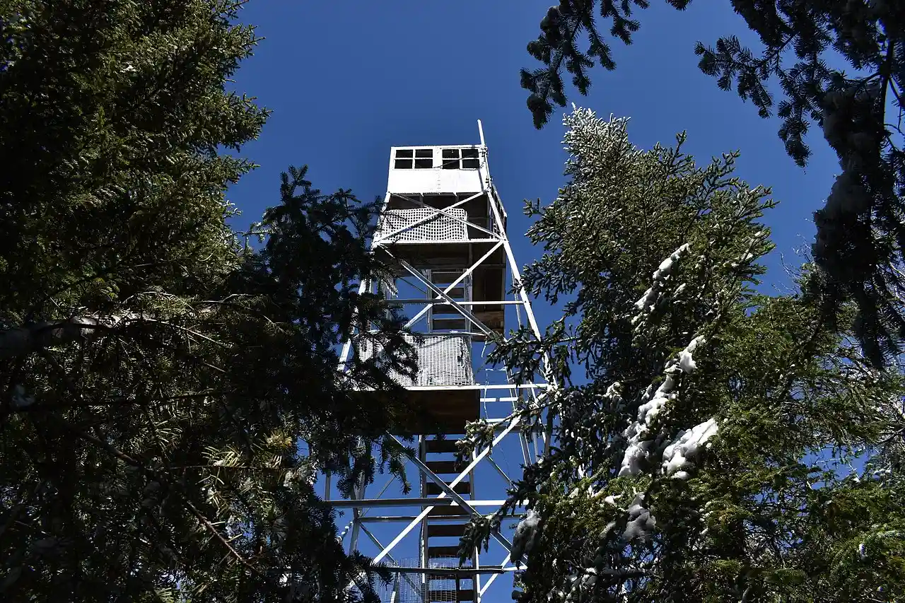 The Mount Adams Fire Observation Station is a historic fire observation station located on Mount Adams at Newcomb in Essex County, New York. The station and contributing resources include a , steel frame lookout tower erected in 1917, a foot trail leading up the 3,250 foot summit, and the 1922 observers cabin with shed and privy. The tower is a prefabricated structure built by the Aermotor Corporation to provide a front line of defense in preserving the Adirondack Park from the hazards of forest fires. Read more on Wikipedia