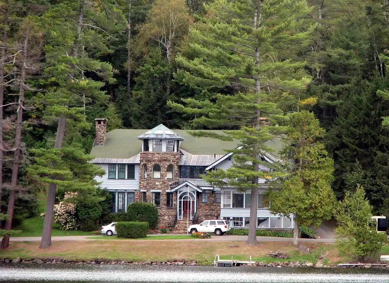 Camp Intermission, also known as William Morris House, is a historic Great Camp located on Lake Colby just outside the village of Saranac Lake in the town of Harrietstown, Franklin County, New York. It was built in 1928 for theatrical agent William Morris, designed by William G. Distin. The property includes the main house and seven contributing outbuildings. The house is a -story, rectangular wood and stone dwelling with a rear kitchen wing. The house features elaborately patterned stone arches and sills and a "cure porch." The outbuildings include a wood shed, machine shed housing a wood cutter, wellhouse, root cellar, ice house, barn, and a caretaker's house. See also: Read more on Wikipedia