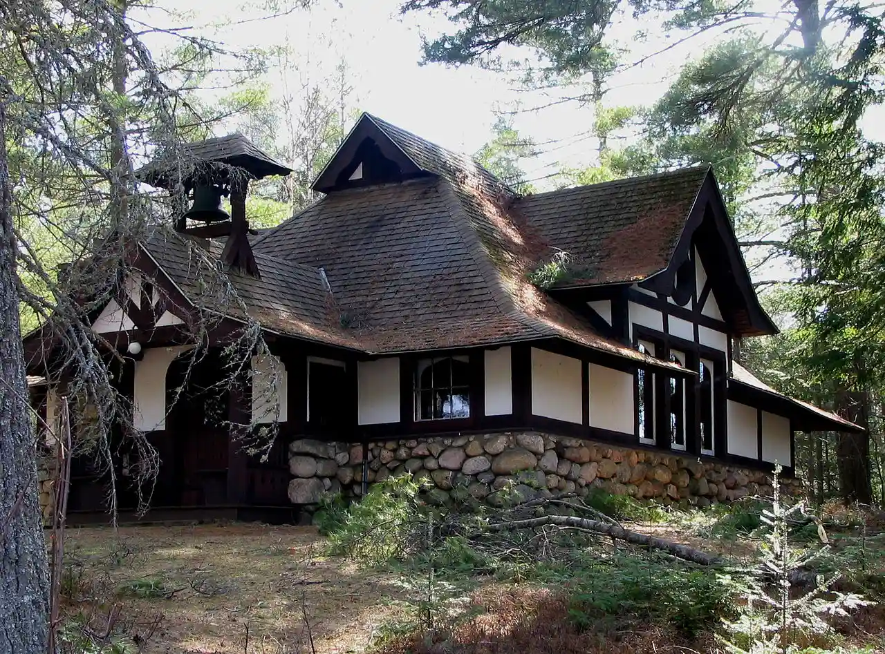 The St. Regis Presbyterian Church was founded by the Reverend William B. Lusk, who first conducted services in the Keese's Mills schoolhouse, and served as pastor from 1899 to 1906. Paul Smith donated land on the St. Regis River and summer residents on the St. Regis lakes donated the funds used to construct the church. The church was designed by Saranac Lake architect William L. Coulter. Read more on Wikipedia