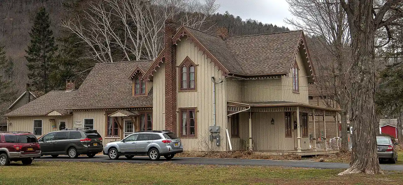 Old Episcopal Manse is a historic Episcopal manse building on New York State Route 23, Main Street in Prattsville, Greene County, New York. It was built about 1845 and is a -story, cross-gable house type with Gothic Revival style features. It features board and batten siding and a steeply pitched gable roof. Also on the property is a carriage house, also built about 1845. See also: Read more on Wikipedia