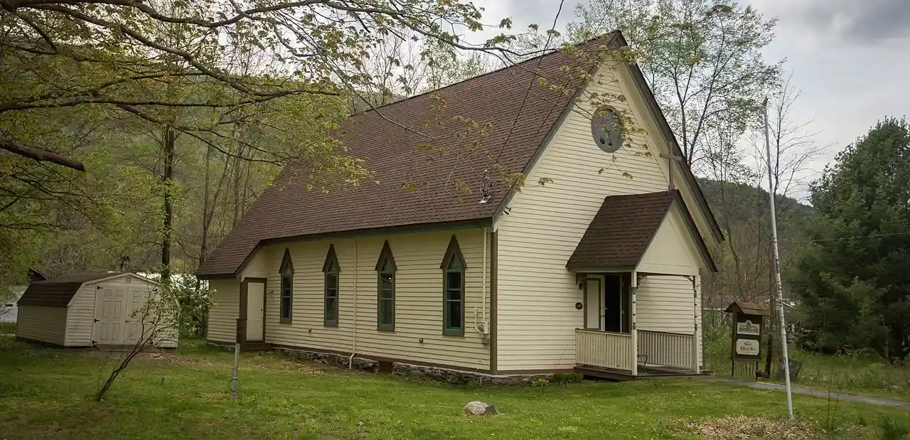 St. Francis DeSales Church is a historic Roman Catholic church on Church Street in Lexington, Greene County, New York. It was completed in 1895 and is a one-story, four by one bay light frame structure on a stone and concrete foundation. It features a steeply pitched gable roof, narrow clapboard sheathing, and an enclosed porch. See also: Read more on Wikipedia