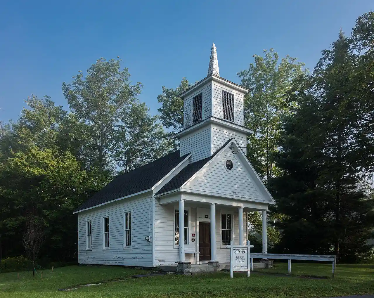 Union Chapel, also known as Mitchell Hollow Union Chapel, is a historic chapel on Mill Road in Windham, Greene County, New York. It was built in 1897 and is a one-story, three by three bay, wood-frame structure resting on a stone and concrete foundation. It is sheathed in narrow clapboards and features a fully pedimented portico and a two-stage bell tower. It was built by the local Methodist Episcopal and Presbyterian congregations. See also: Read more on Wikipedia