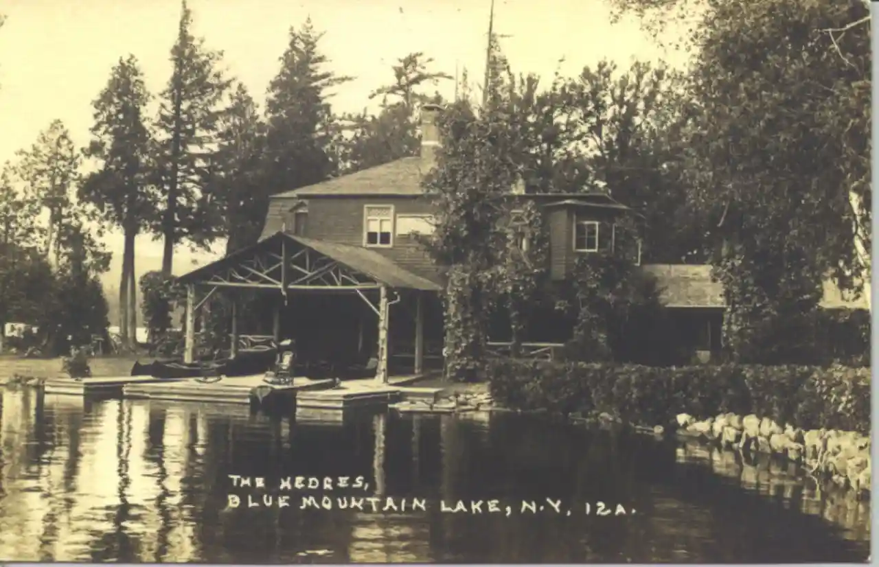 The Hedges is a historic home and Adirondack Great Camp located at Blue Mountain Lake in Hamilton County, New York. The property consists of 30 buildings and structures and many related site features. From about 1890 to 1920, it was the seasonal home of Hiram B. Duryea, and from this period nine buildings and structures remain. In 1920, it was purchased by Richard J. Collins and converted to an Adirondack resort. The Main Lodge complex was built in 1882; the main block is a two-story, wood-framed building with a mansard roof. The Stone Lodge was built 1900–03 and is a two-story gambrel-roofed building. See also: Read more on Wikipedia