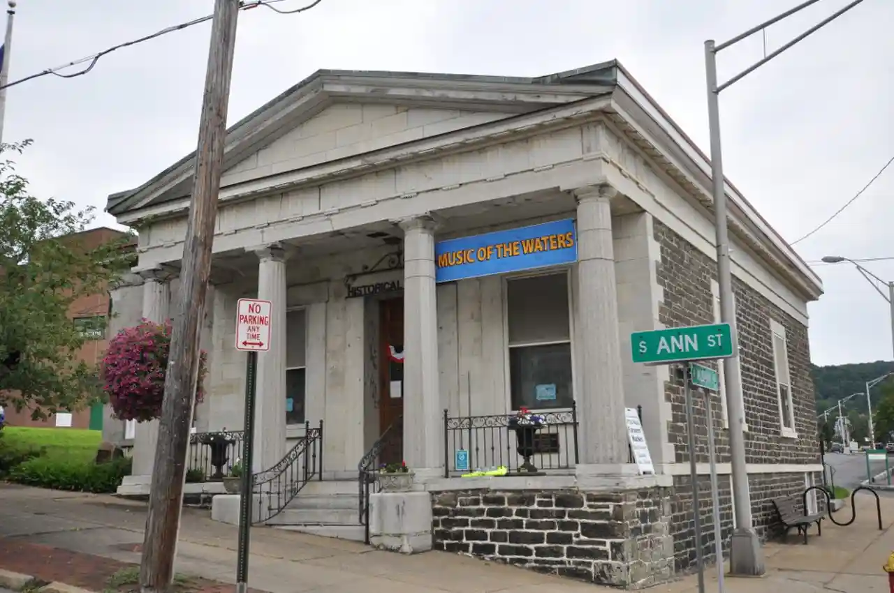 Herkimer County Trust Company Building is a historic bank building located at Little Falls, New York in Herkimer County, New York. It was built in 1833 and is a three-by-two-bay rectangular structure built of cut stone and broken range masonry. It features a portico supported by four Ionic order stone columns and gable roof in the Greek Revival style. It housed the Herkimer County Bank/Herkimer County Trust Company until 1917, See also: and now houses the local historical society. Read more on Wikipedia