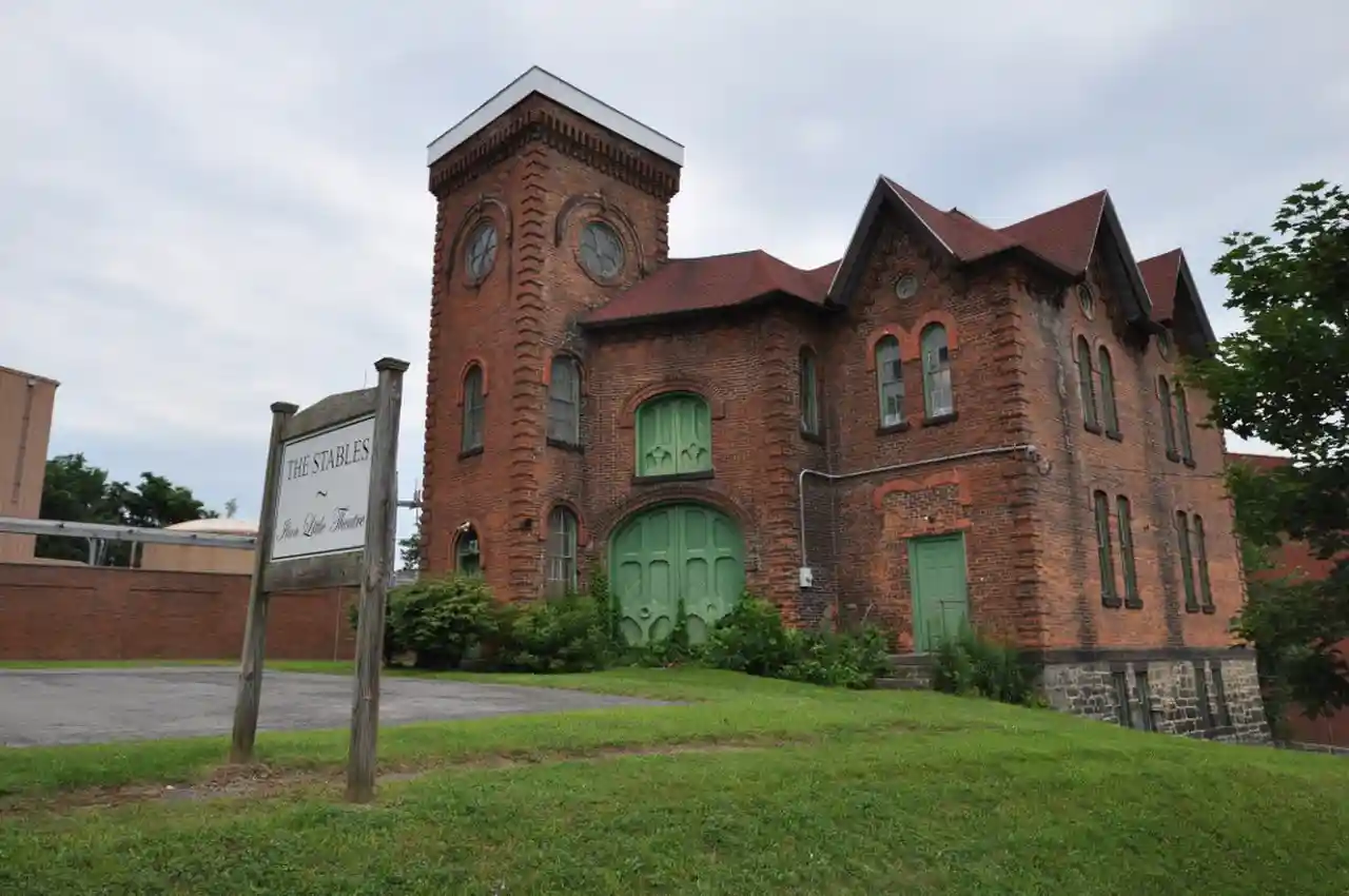 Remington Stables is a historic stable building located at Ilion in Herkimer County, New York. It is a large 2-story brick structure built about 1870 as part of the Remington Mansion complex. The mansion was demolished about 1930. It consists of three connecting masses: a 2-story, square central block; a 3-story, engaged tower; and a -story rear wing. When built, the tower had a pagoda roof, but it was removed in the 1930s. The stable building has been adapted for use as a theater and used by the Ilion Little Theatre Club. See also: Read more on Wikipedia
