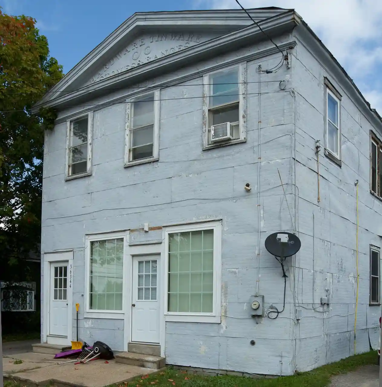 Central Garage, originally Snyder's Tin and Hardware Shop, is a historic commercial structure located in Orleans in Jefferson County, New York. It was built in 1902. It is a two-storey, frame, rectangular building characterized by its retrained Classical Revival styling and sheet metal sheathing. It was converted from use as a shop to a garage in the 1930s. See also: Read more on Wikipedia