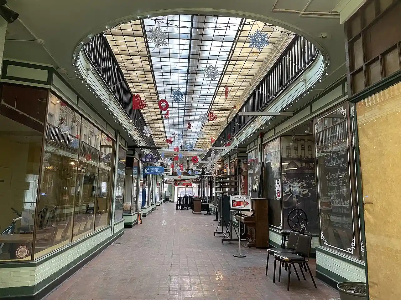 The Paddock Arcade is a 19th-century shopping mall located in Watertown, New York. Built in 1850, it is the second oldest covered shopping mall and the oldest continuously running enclosed shopping mall in the United States. Since it has seen uninterrupted use since it opened in 1850, it carries the distinction of being the country's oldest, continuously operating covered shopping mall. Note: This includes and Accompanying photographs The Paddock Arcade was listed on the National Register of Historic Places in 1976. Read more on Wikipedia