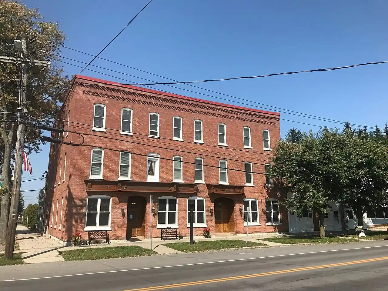 Roxy Hotel is a historic hotel located at Cape Vincent in Jefferson County, New York. It is a red brick structure consisting of two sections: a three-story, eight bay main block and a two-story, four bay side wing. It was built in 1894, and has remained in continuous use as a hotel and center of the local tourist trade. The hotel was restored in 2011 by Michael Treanor, into 16 hotel rooms and an Irish Pub called Monaghan's Irish Pub. Read more on Wikipedia