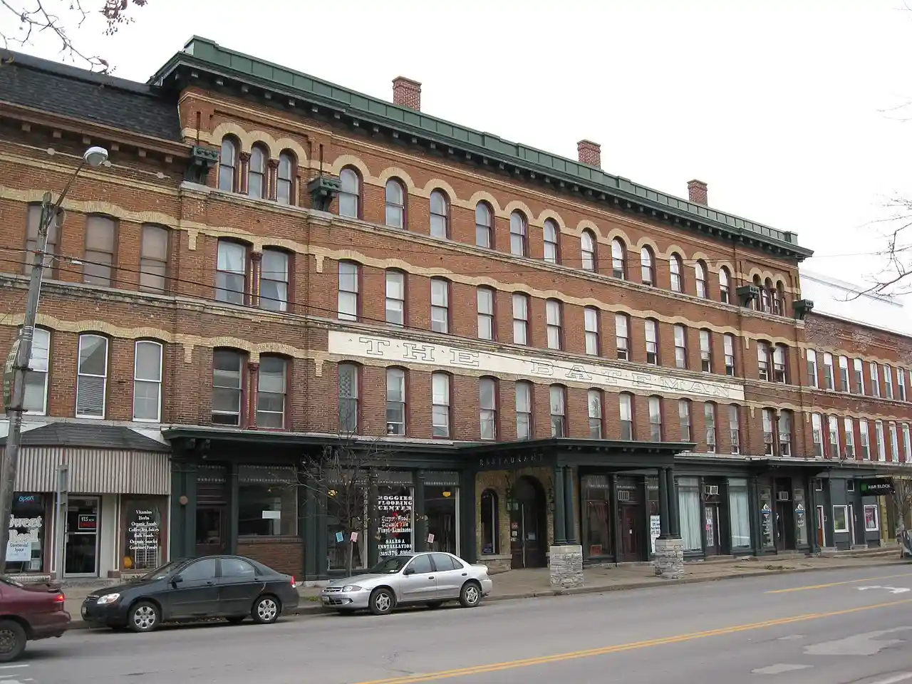 The Bateman Hotel, previously known as Howell Hotel or Kellogg Hotel, located in Lowville, New York, is now a conglomerate of condos. At one time, it was a hotel with a kitchen, a dining room, and a saloon. The hotel is listed in the National Register of Historic Places. Read more on Wikipedia