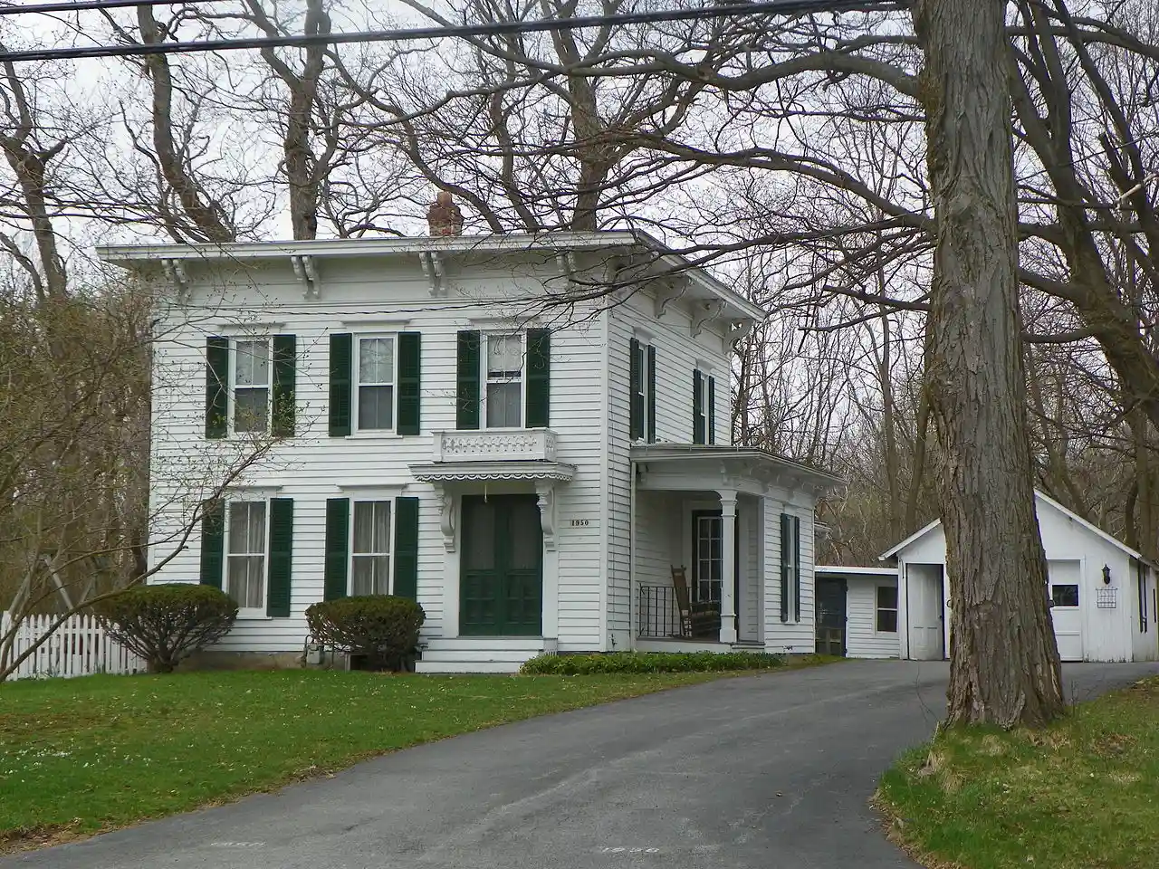 Bristol House is a historic home located at Lima in Livingston County, New York. It was built between 1870 and 1875 and is a two-story, three bay wide by two bay deep, Italianate style frame dwelling. The front facade is dominated by the elaborate canopy above the slightly recessed, paneled wooden doors of the side hall entrance. Read more on Wikipedia