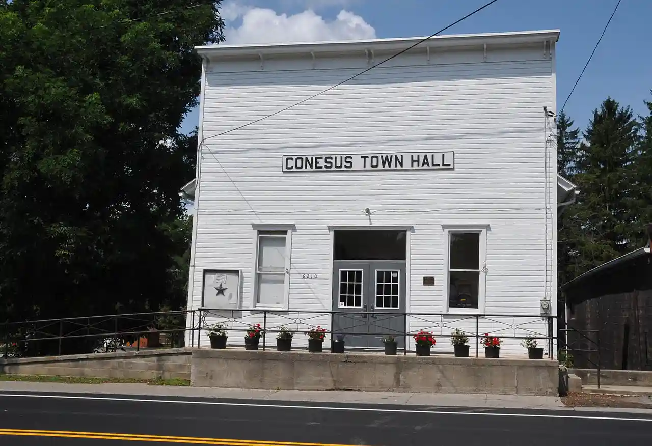 Conesus Amusement Hall, now known as Conesus Town Hall, is a historic multi-purpose community hall located at Conesus in Livingston County, New York. It was completed in 1888. It is a 1-story, three-by-four-bay frame structure, approximately 30 feet by 70 feet. Note: This includes and Accompanying seven photographs Read more on Wikipedia