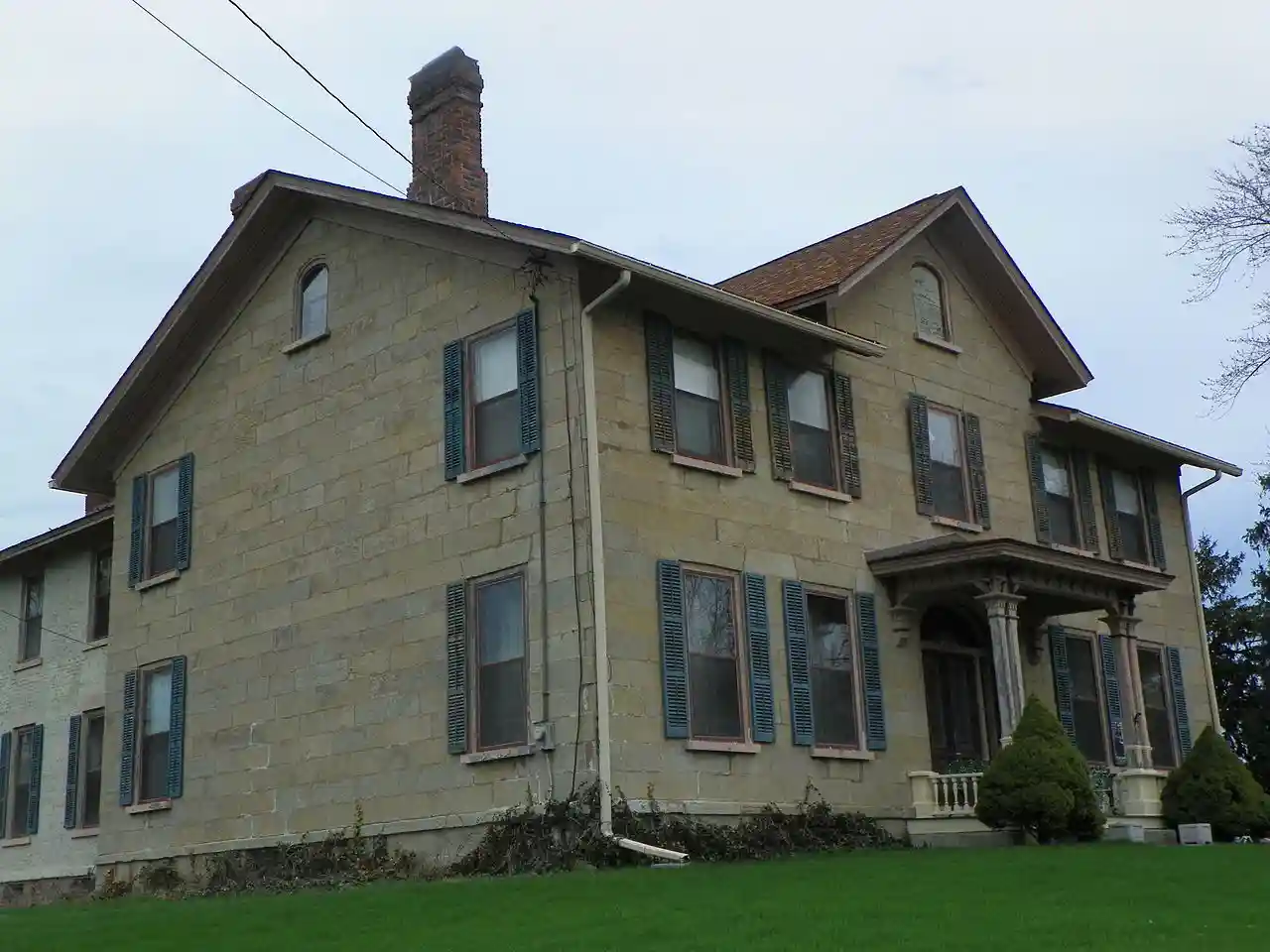 Thomas Peck Farmhouse is a historic home located at Lima in Livingston County, New York. It was built about 1812 and remodeled sometime between the 1860s and 1880s. It is a two-story, five bay Federal style stone building with late 19th century Italianate and Gothic Revival inspired design features. The house is built of fieldstone and faced in cut limestone. Also on the property are three contributing dependencies and one contributing site: a privy, an ice house, a guest / tenant house, and the remains of a former barn complex. Read more on Wikipedia