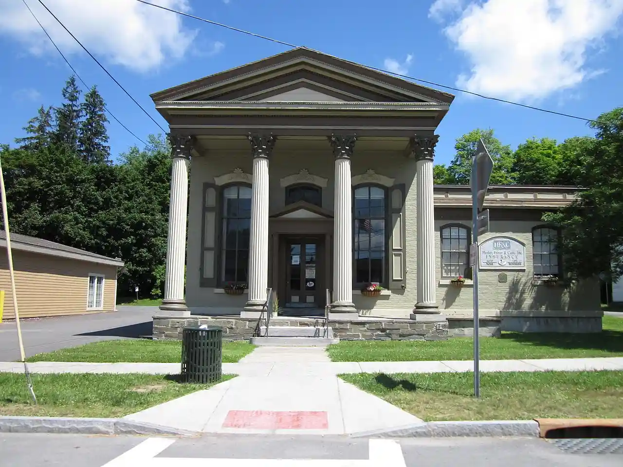 First National Bank of Morrisville, also known as First Trust & Deposit Co. or Key Bank, is a historic bank building located at Morrisville in Madison County, New York. It was built in 1864 and expanded in the 1890s, 1920s, and 1950s. It is a single-story brick building that features a finely detailed tetrastyle, Corinthian order portico. Note: This includes and Accompanying eight photographs Read more on Wikipedia
