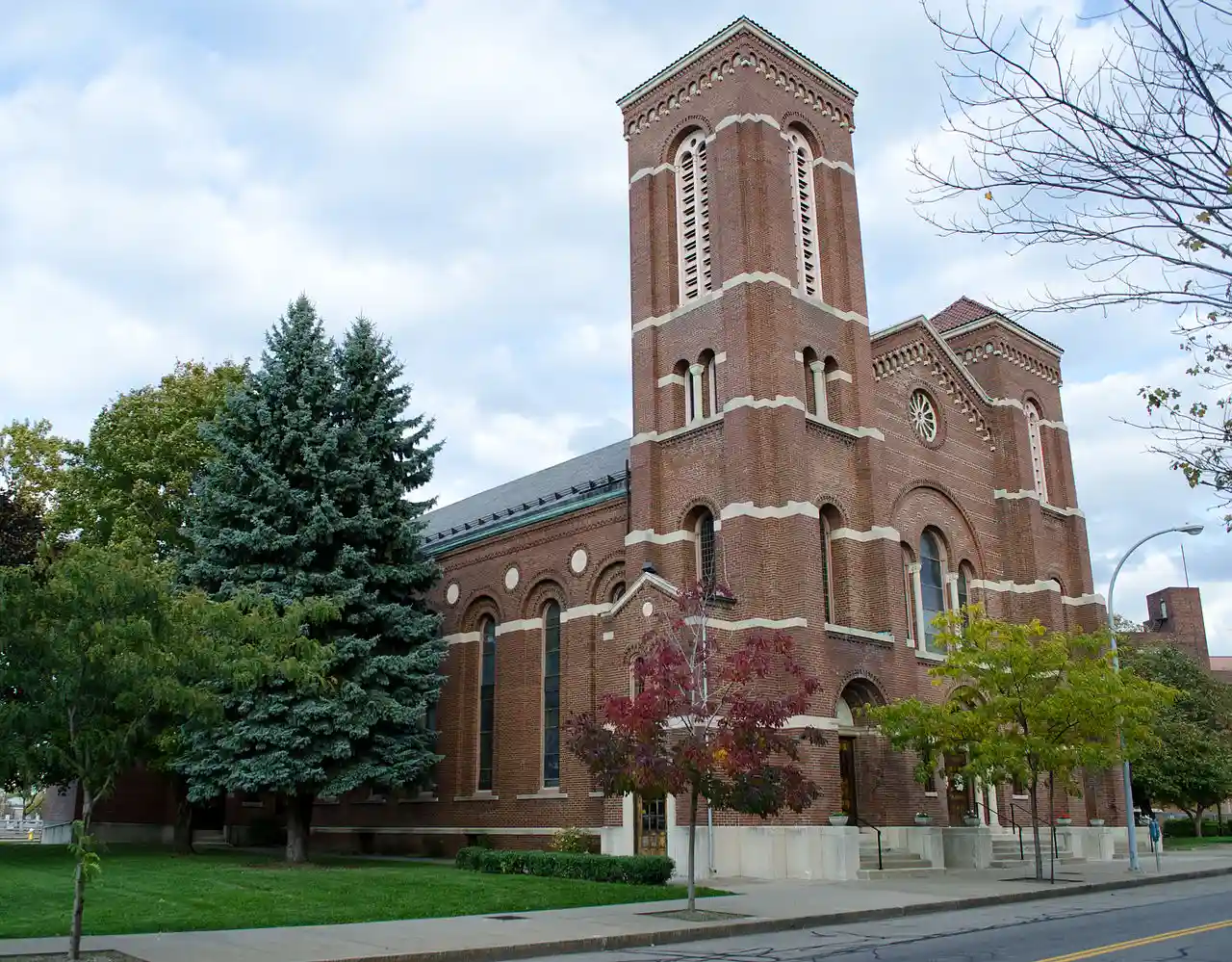 German United Evangelical Church Complex, also known as Salem Evangelical Church (1921), Salem Evangelical and Reformed Church (1943), and Salem United Church of Christ (1957), is a historic Evangelical and Reformed church complex located at Rochester in Monroe County, New York. The complex includes the original church structure (1874) with attached wing (1895) and the later parish house and church school (1923). See also: Read more on Wikipedia
