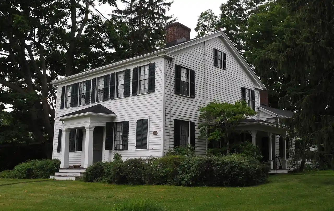Hopkins Farm is a national historic district and farm complex located at Pittsford in Monroe County, New York, United States. It consists of 15 contributing buildings, eight contributing structures, and one contributing site on a farm. The largest group of structures are clustered around the farmhouse, built about 1815 in a vernacular Federal style, and includes two barns, several outbuildings, and two tenant houses. See also: Read more on Wikipedia