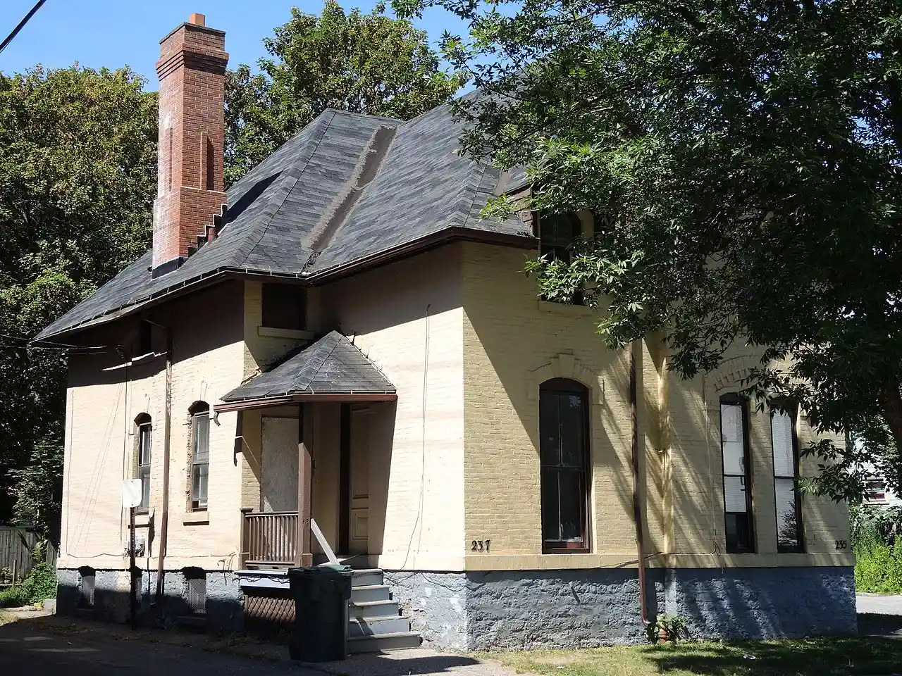 The house at 235–237 Reynolds Street is a historic home located at Rochester in Monroe County, New York. It was constructed between 1880 and 1885 as a multi-family dwelling and is an unusual example of High Victorian Gothic style residential architecture in Rochester's Eighth Ward. It is a modestly sized two-bay, two-story brick structure that features asymmetrical massing and verticality and elongation of architectural elements. See also: Read more on Wikipedia