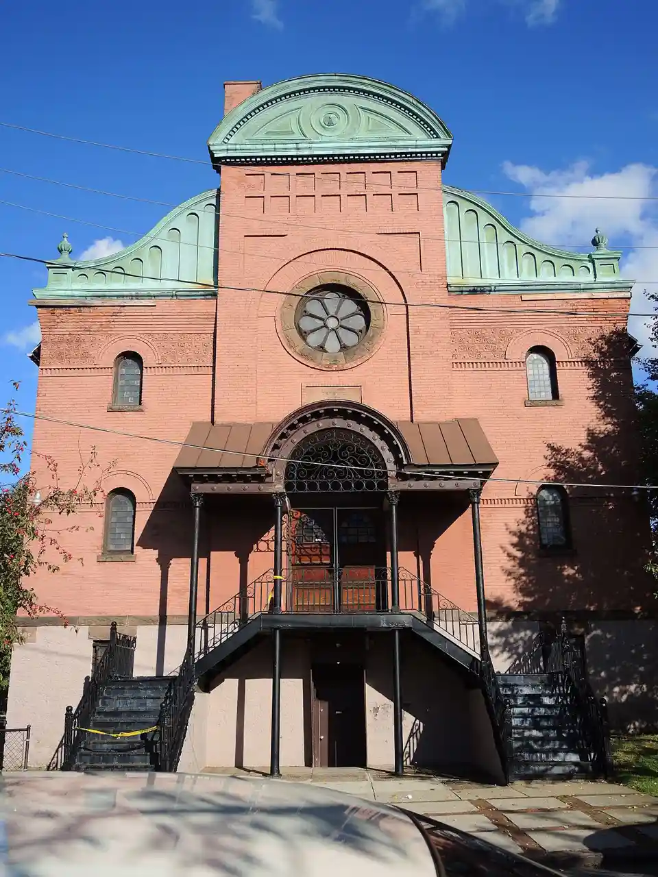 Leopold Street Shule is a historic synagogue located at Rochester in Monroe County, New York. It was built in 1886 and is a rectangular brick building set on a high cut stone foundation measuring 45 feet by 85 feet. It was built by Eastern European Jews affiliated with the orthodox Beth Israel Congregation. In 1973, the former synagogue was purchased by the Church of God and Saints of Christ, a Hebrew Israelite congregation. See also: Read more on Wikipedia