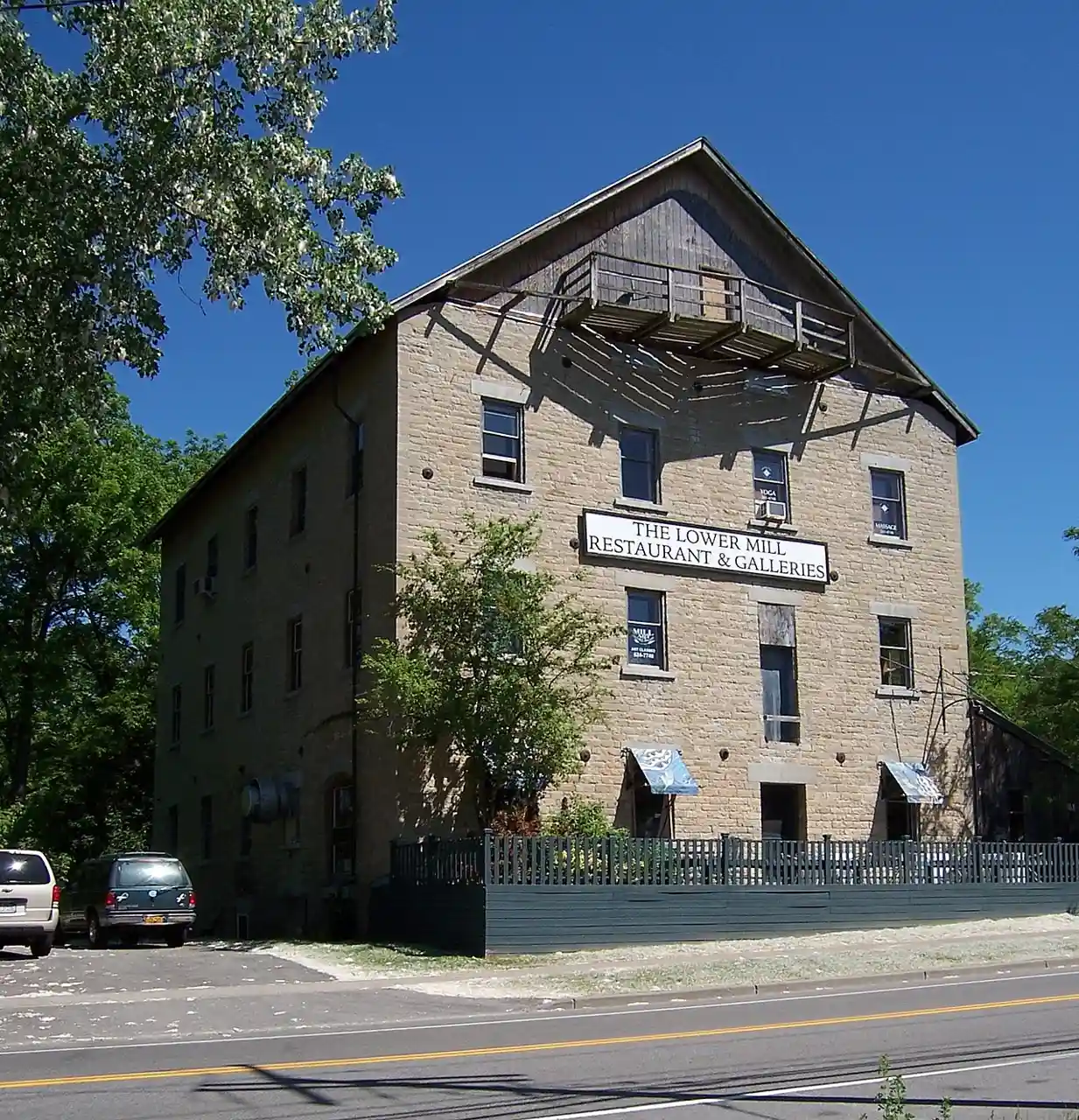 Lower Mill is a historic grist mill located at Honeoye Falls in Monroe County, New York, USA. The 3- to -story stone structure was built about 1829. The mill operated into the 1930s, and the structure was subsequently used by a creamery, oil company, and for community use. See also: A restaurant and gallery now operates in the structure. Read more on Wikipedia