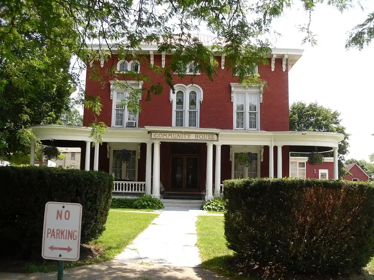 Bates-Englehardt Mansion, also known as St. Johnsville Community House, is a historic home located at St. Johnsville in Montgomery County, New York, United States. It was built in 1869 as a three-story Italianate style mansion. It has a 35 feet by 40 feet main block with a two-story kitchen wing in the rear. A brick solarium was added in 1916 and enlarged and converted to an auditorium in 1934. The original Italianate style flat roof with cupola was replaced in 1916 with a Georgian style roof. The front entrance features a Colonial Revival style porch added in 1909. See also: Read more on Wikipedia