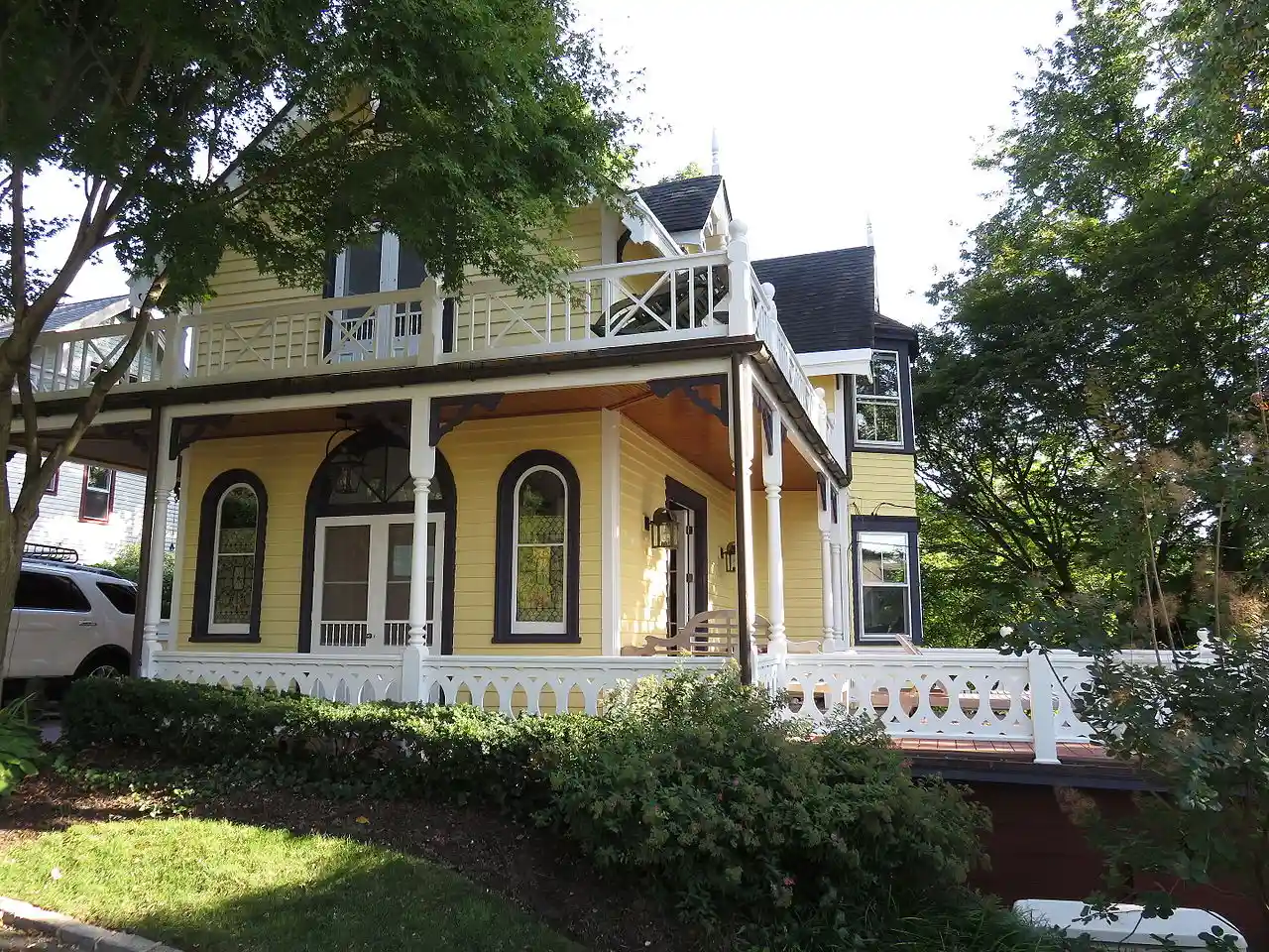House at 173 Sixteenth Avenue is a historic home located at Sea Cliff in Nassau County, New York. It was built about 1880 and is a -story, cruciform clapboard residence with a cross-gable roof. It features a two-tiered wraparound porch and Gothic details. Read more on Wikipedia