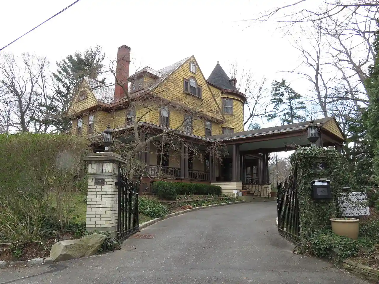 House at 19 Locust Place is a historic home located at Sea Cliff in Nassau County, New York. It was built in 1893 and is a large, rambling -story house with slate-covered cross-gable roof and a large round tower in the Shingle Style. It features a broad shed-roofed wraparound porch supported by Doric order columns and a variety of window types. Read more on Wikipedia