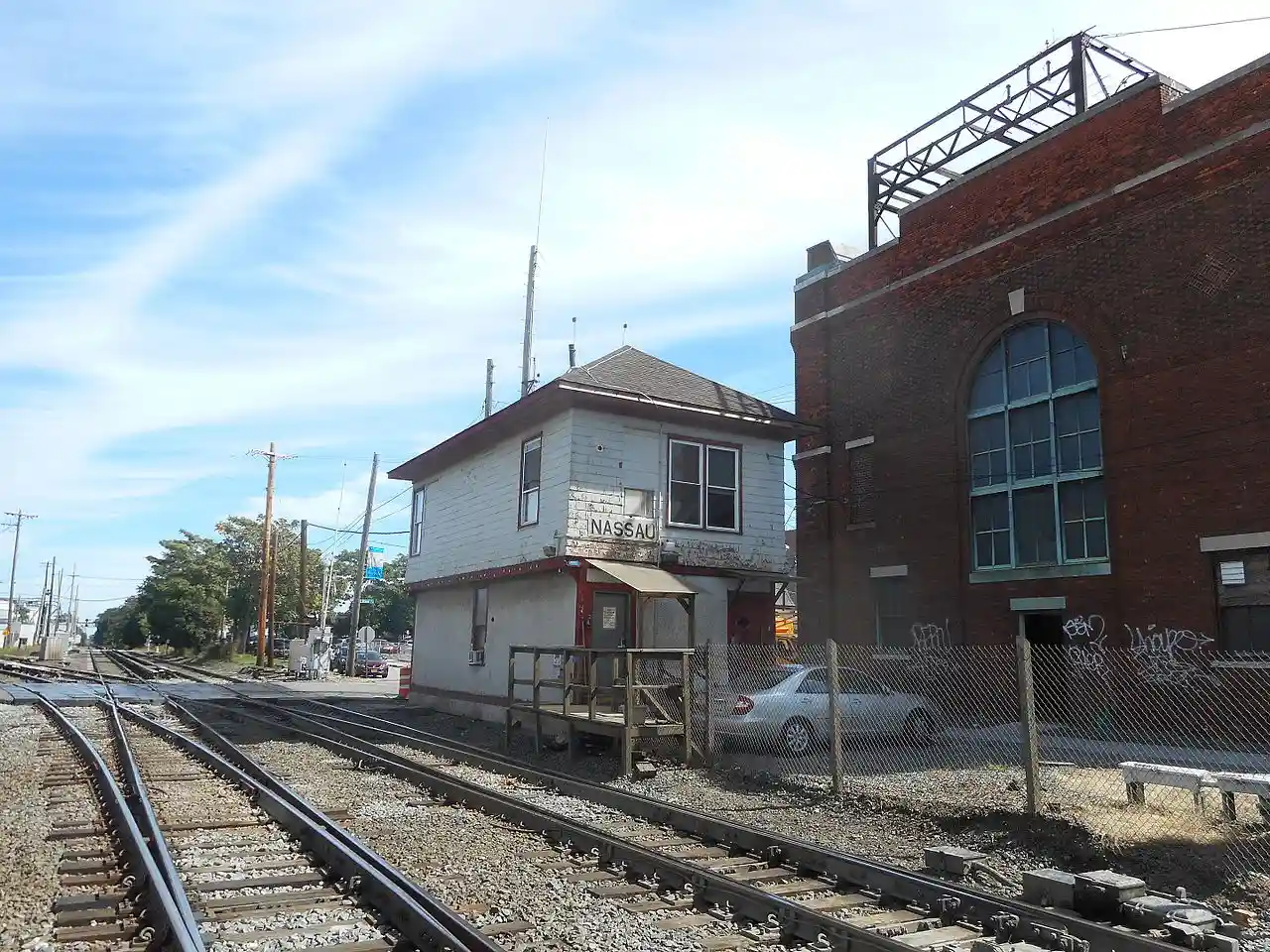 Nassau Tower was the Long Island Rail Road's interlocking and signal tower for NASSAU Interlocking at Mineola Junction, just east of the Mineola station, from 1923 until 2020. As part of LIRR's Main Line Expansion Project, which is creating a third track along the Main Line between Floral Park and Hicksville stations, the tower was decommissioned and demolished. Read more on Wikipedia