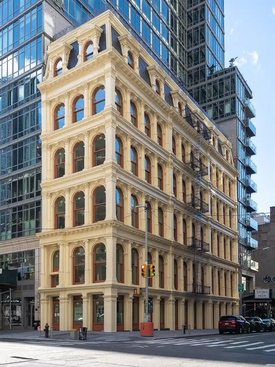 287 Broadway is a historical building on the corner of Broadway at Reade Street in the Tribeca neighborhood of Lower Manhattan, New York City. Designed by John B. Snook in 1871 using cast-iron in mixed Italianate and French Second Empire style, it was completed in 1872 for the Stephen Storm estate. The landmark, which "graphically illustrates the transformation of lower Broadway in the 19th century from a residential boulevard into the city's commercial center", was leaning approximately by 2008. Read more on Wikipedia