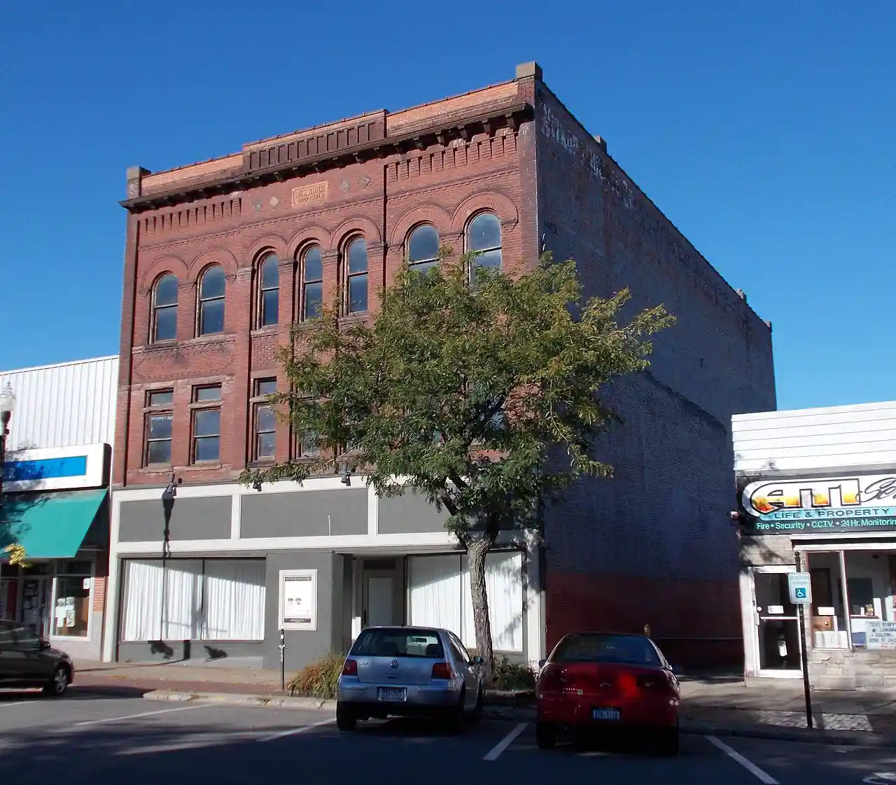 Dick Block is a historic commercial building located at North Tonawanda in Niagara County, New York. It was built in 1891 and is a three-story, three-bay, red brick building in the Romanesque Revival style. It features rounded windows and arches, rusticated stone detailing, and ornamental brickwork. The first floor storefronts were modernized about 1946, when the building was occupied by the Witkop and Holmes Company furniture store. Note: This includes and Accompanying eight photographs Read more on Wikipedia